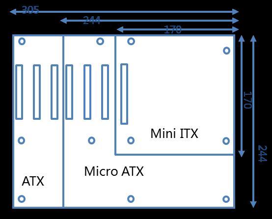 工業主板,可直接安裝在設備內使用,如安裝在自動售貨機內實現自動售貨;可搭配傳統4U工控機箱使用,常用于機器視覺、工業自動化等領域;或是安裝在嵌入式主機內,適用于VTM、地鐵閘機、自助終端、醫療設備等領域。可見,工業主板尺寸滿足多樣化,以適應不同需求。工業主板可分為ATX、Micro ATX、Mini ITX,具體尺寸如圖所示:
